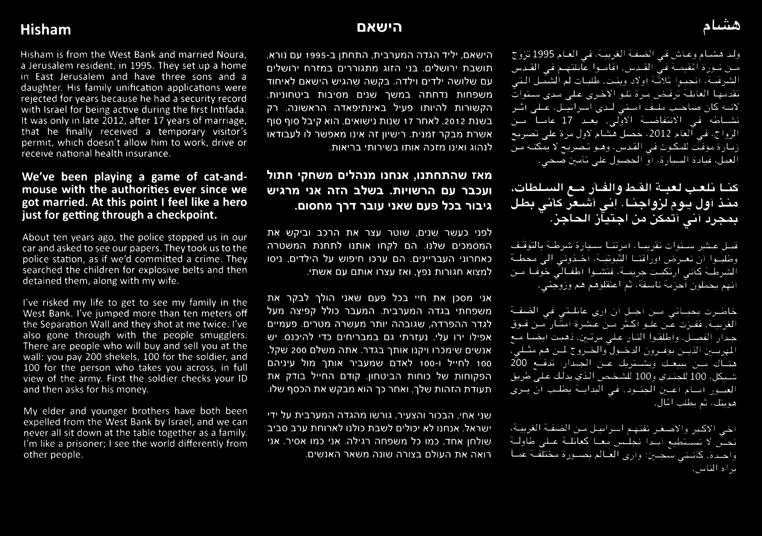 "I've risked my life to get to see my family in the West Bank. I've jumped more than ten meters off the Separation Wall and they shot at me twice."