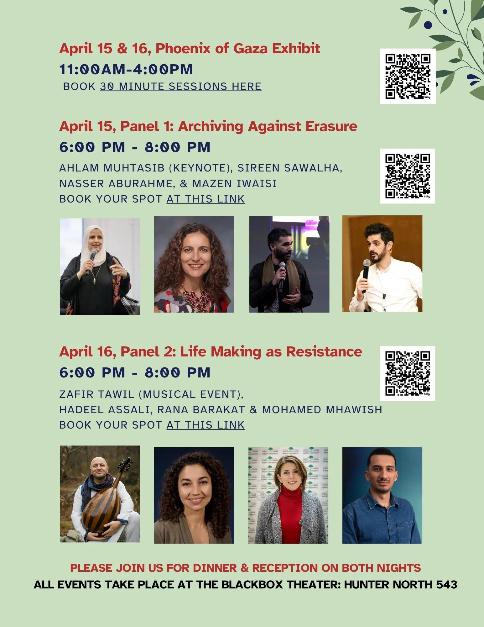 In addition to the Phoenix of Gaza, there are two evenings of programming with dinner to celebrate “Gaza the dignified and resilient” (غزة العزة والصمود) and the Palestinians who insist on dignity, resilience, and beauty as they resist its erasure.
