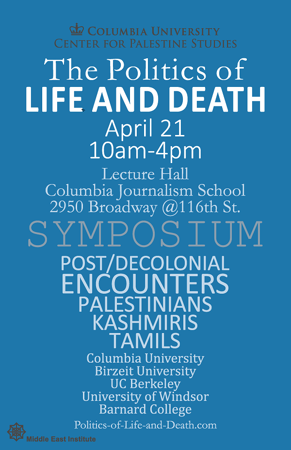 - Tagged Middle East Institute, Columbia University Department of Philosophy and Cultural Studies, The Windsor-Birzeit Dignity Initiative University of Windsor and Birzeit University, Birzeit University Political Conflict Gender and People's Rights Project, Center for Race and Gender University of California Berkeley, Richard Shapiro, Brinkley Messick, Rashid Khalidi, Mohamad Junaid, Cheran, Nadia Abu El-Haj, Abdul Rahim al-Shaikh, Angana P. Chatterji, Gil Anidjar, abd